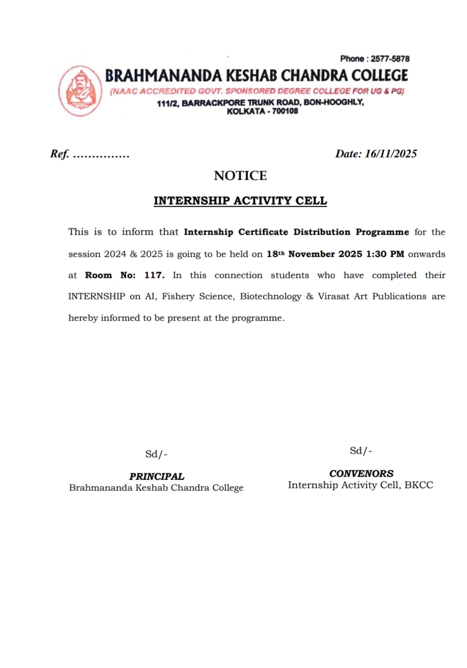 News : Internship Certificate Distribution Programme on 18th November, 2025
