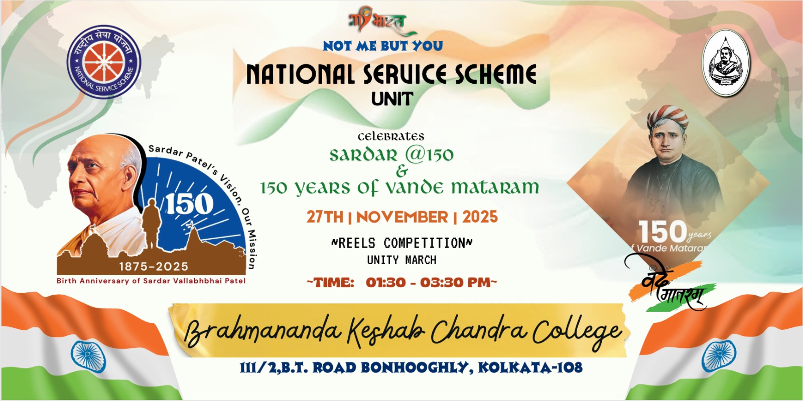 News : Celebration of 150th Birth Anniversary of Sardar Vallabhbhai Patel and 150th Year of Composition of National Song "Vande Mataram" by NSS Unit on 27th November 2025