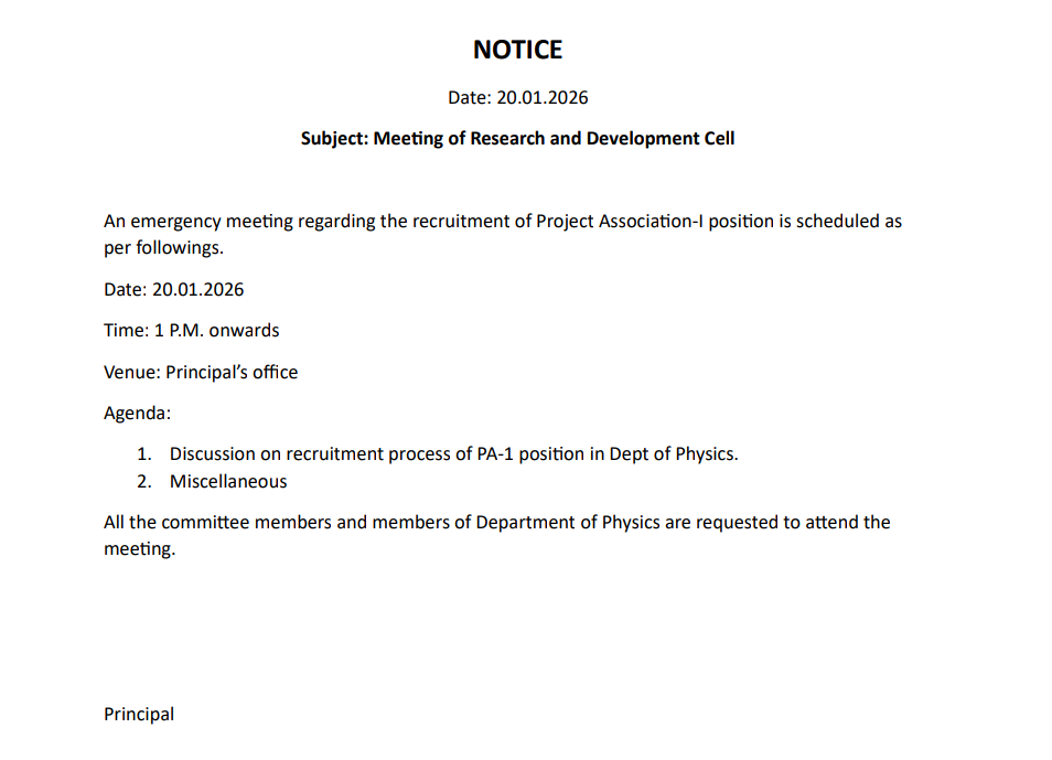 News : Notice for emergency meeting regarding the recruitment of Project Assistant-I on 20.01.2026