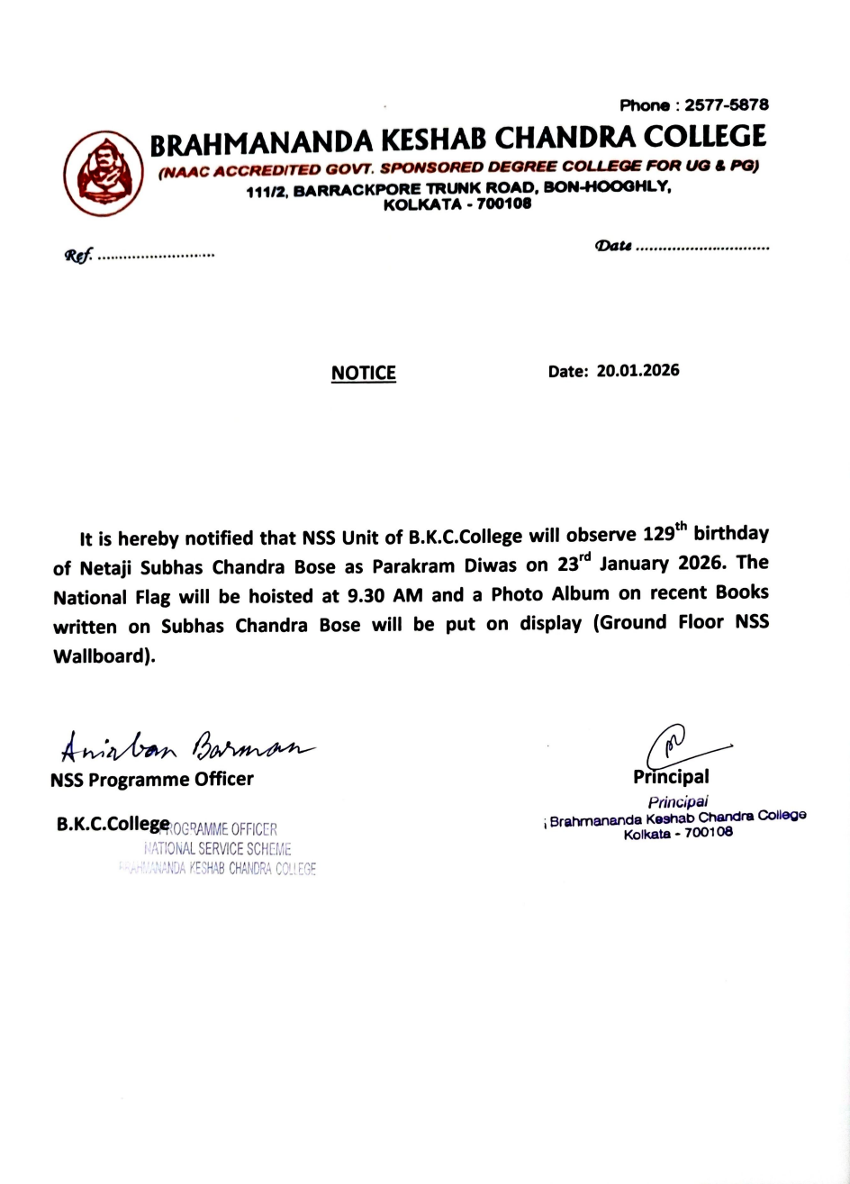 News : Notice for observation of Parakram Diwas on 23rd January 2026