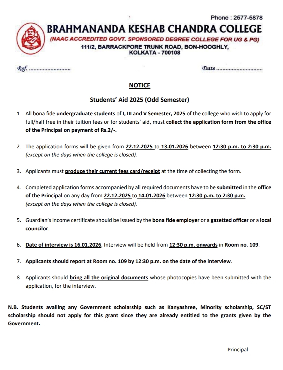 News : Notice on Students' Aid 2025 (Odd Semester)